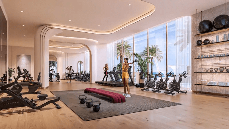 With more than forty sophisticated features that are intended to amuse people of all ages and temperaments, the amenity program is more akin to a resort in a tiny package. Residents may freely move between lounge, play, and salt air thanks to its extensive water program, which includes many pools, including an infinity pool, a distinctive Breez Lagoon, a Jacuzzi, and water lounges with seating that is in and out of the water, a beach sand deck, and an outdoor shower experience. Active lifestyles are offered by the indoor and outdoor gyms, a jogging track, padel and tennis courts, a cricket court, and specialized tables for wall climbing, trampoline, and table tennis.