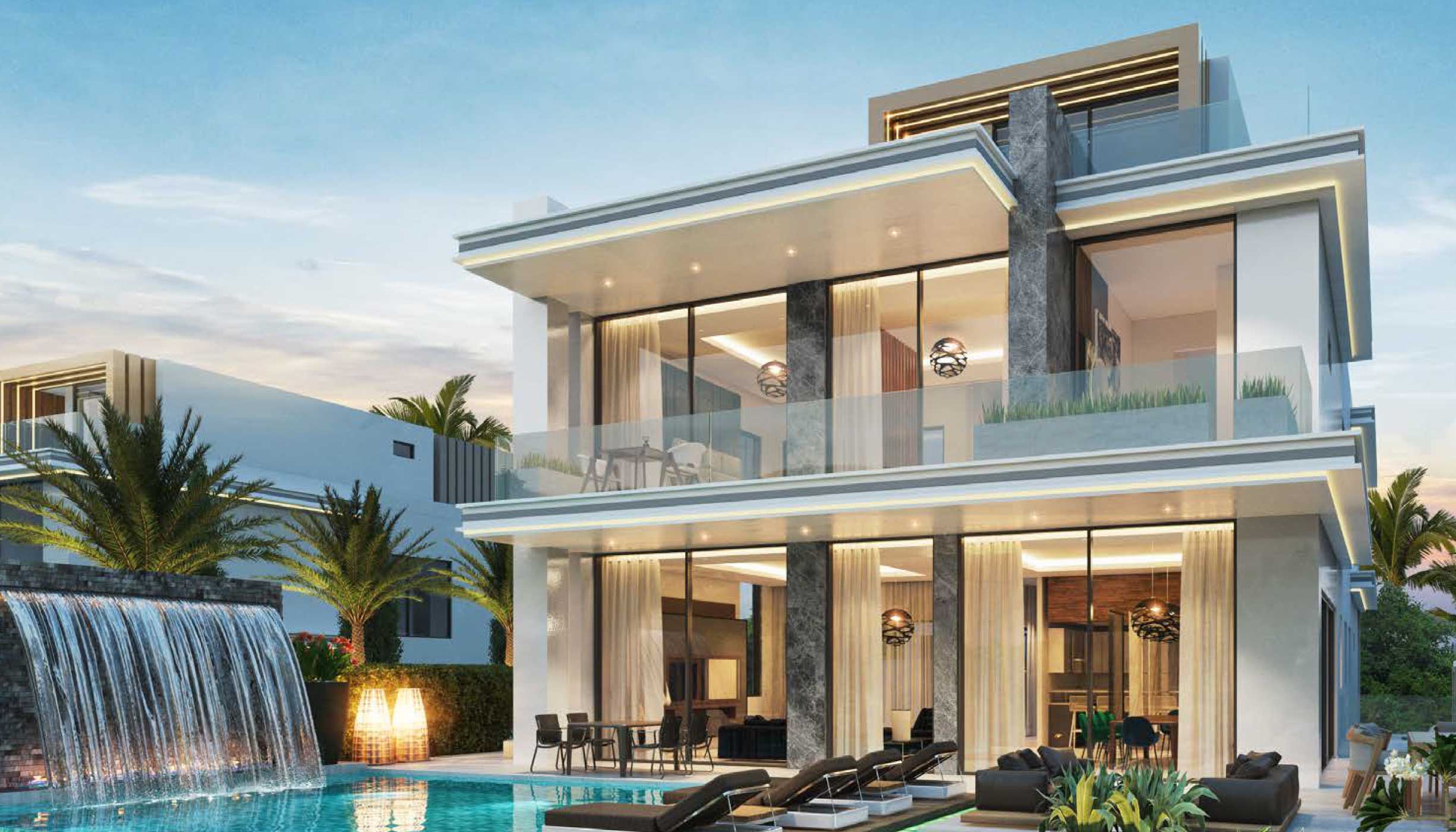 With a selection of 4–5 bedroom townhouses with maid’s quarters and 5–7 bedroom villas, some layouts feature private gyms and staff rooms. The most recent introduction has the Seychelles and Hawaii clusters. These homes offer island life right in the middle of Dubai, surrounded by lagoons, floating decks, and themed wellness and recreation areas.