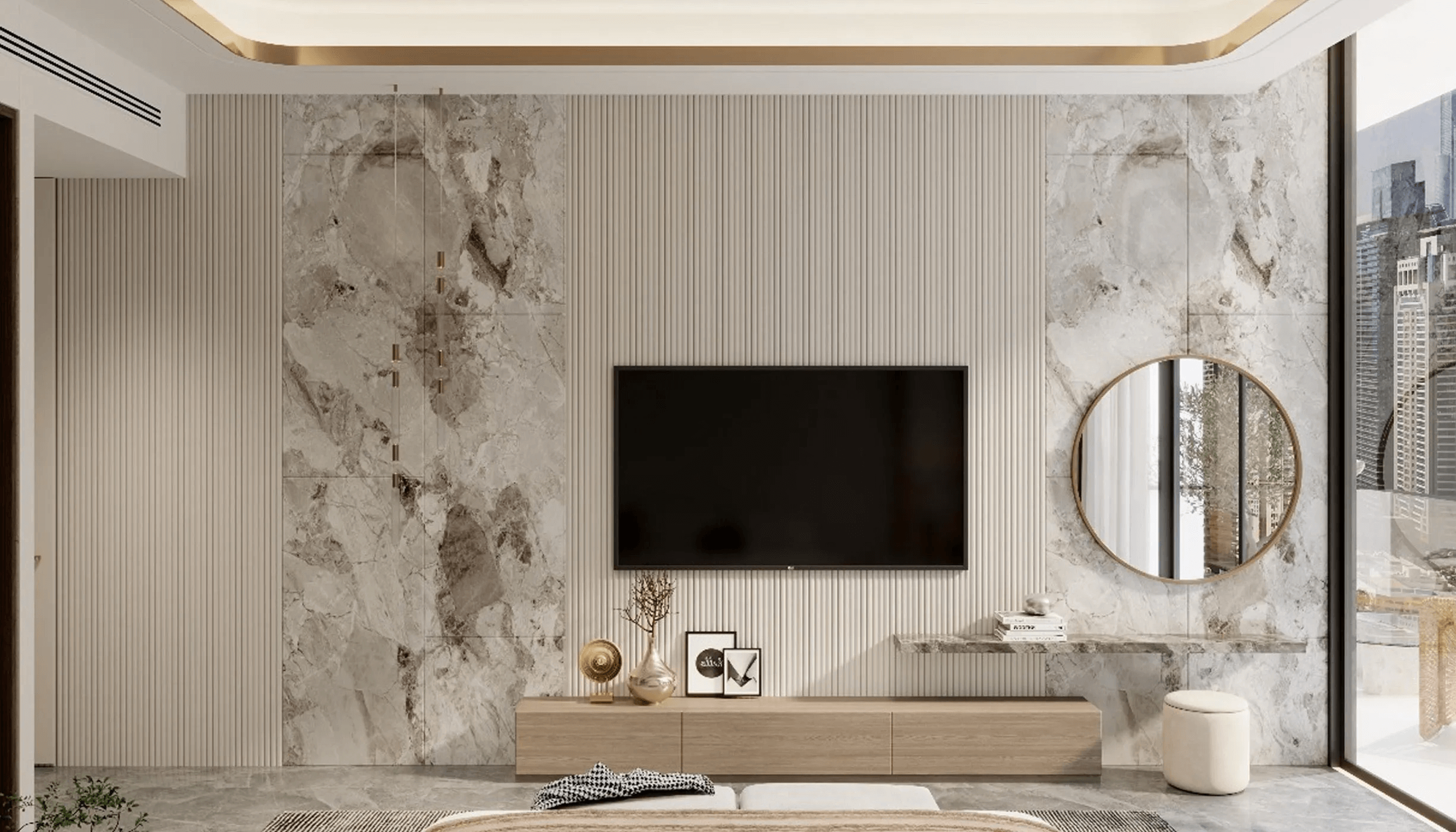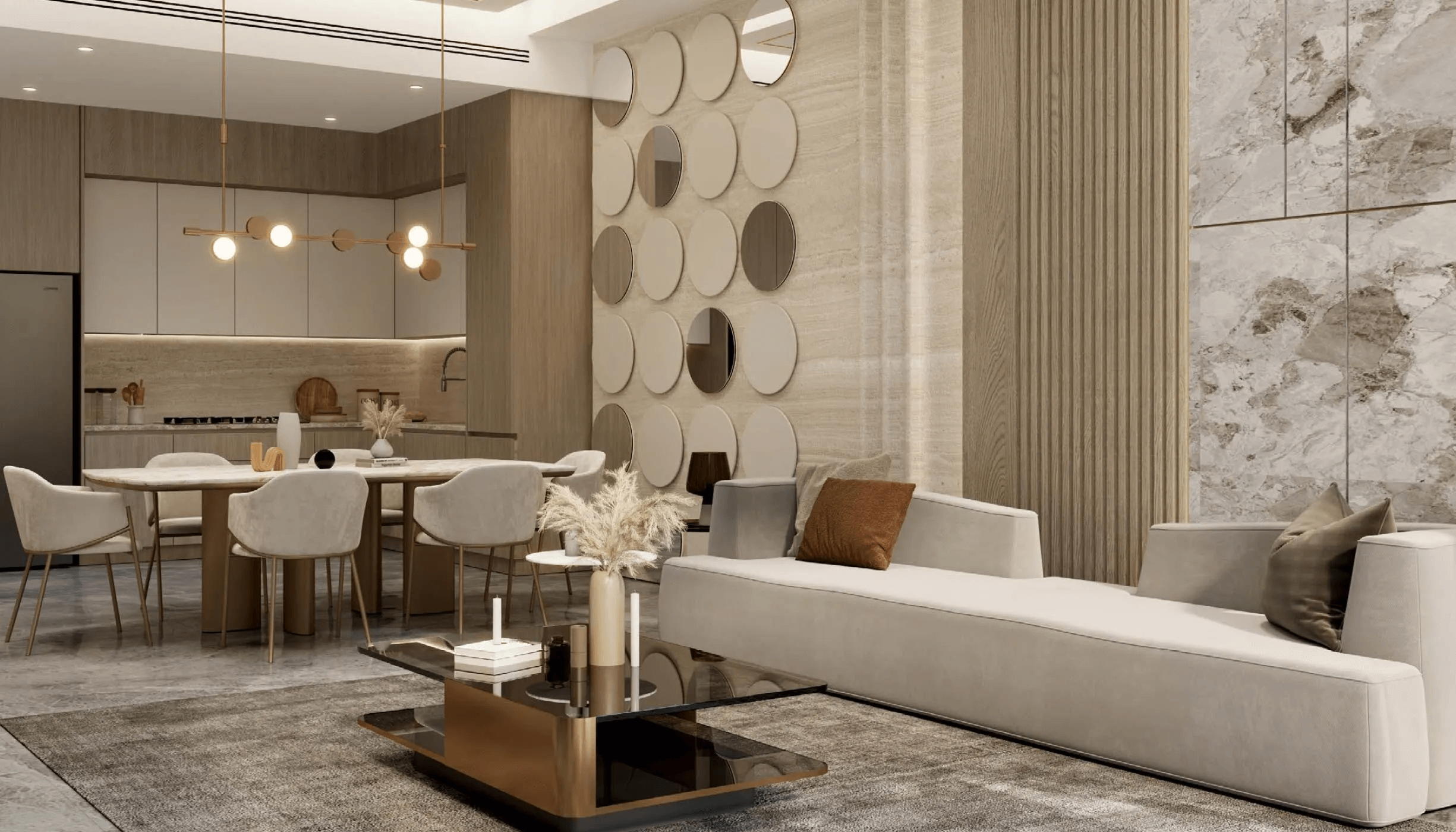 This address offers carefully designed apartments with high-quality finishes and proportions, although there aren’t many residences available. The majority of the apartments have unique designs with extra areas, private pools, and no pools. The neutral color scheme, furnished seating space, and dining area in each apartment create a clutter-free and practical atmosphere for families, while the living room showcases a blend of style and simplicity. Huge windows in the living room and bedrooms let in plenty of natural light while framing expansive views of the surrounding area.